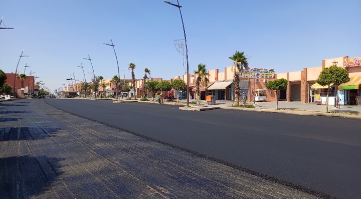 تستمر أشغال تهيئة شارع محمد الخامس على قدم وساق من مدة و التي تعرف اليوم عملية تزفيت الطريق بعد إعادة تهيئة واجهات المحلات التجارية للشارع و الإنارة العمومية التي أصبحت تأخذ رونقا و جمالية جديدة.